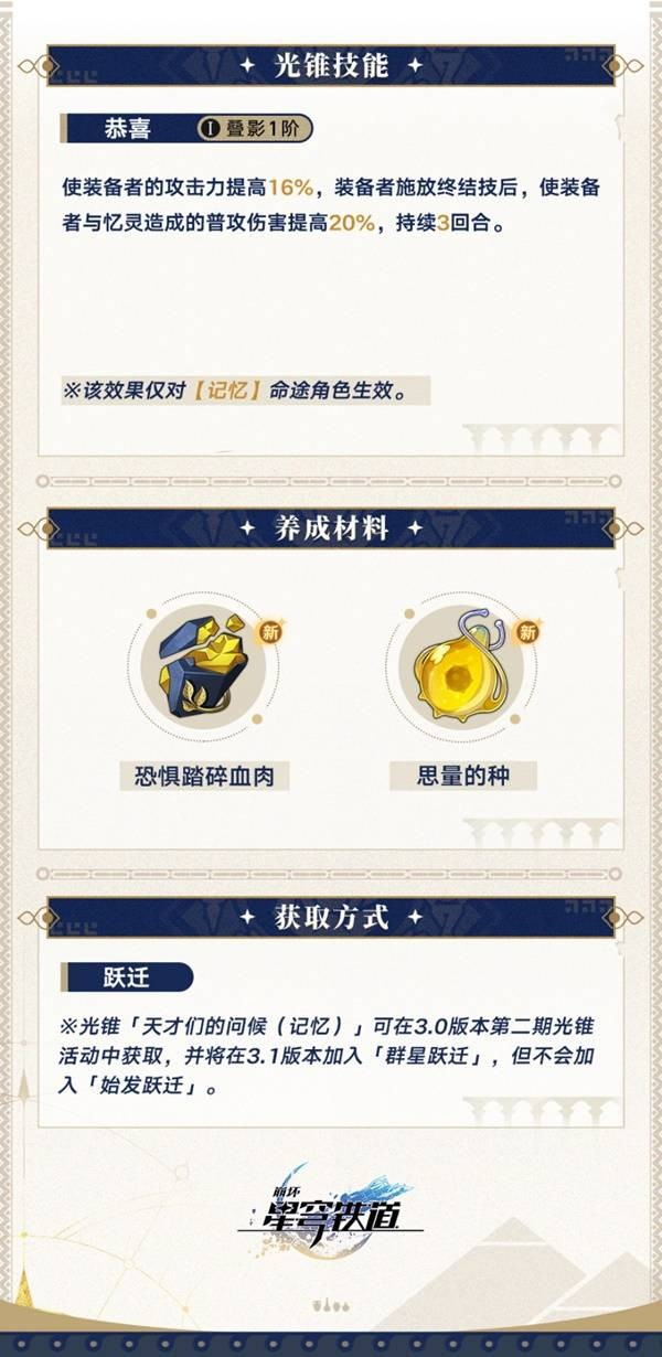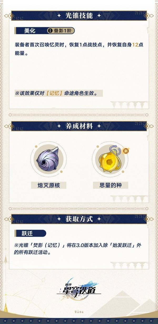 获取途径:「流光定影·将光阴织成黄金」光锥活动跃迁(3.0版本第二期「真意之汇」)。