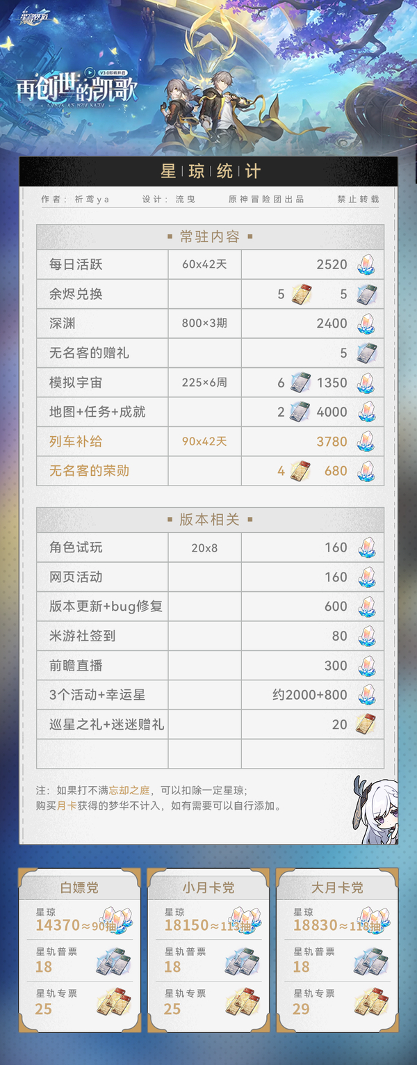 零氪玩家:大约获得16,480星琼,约103次抽卡。