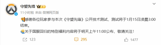 《守望先锋》国服测试已正式结束,许多玩家纷纷期待游戏的回归福利