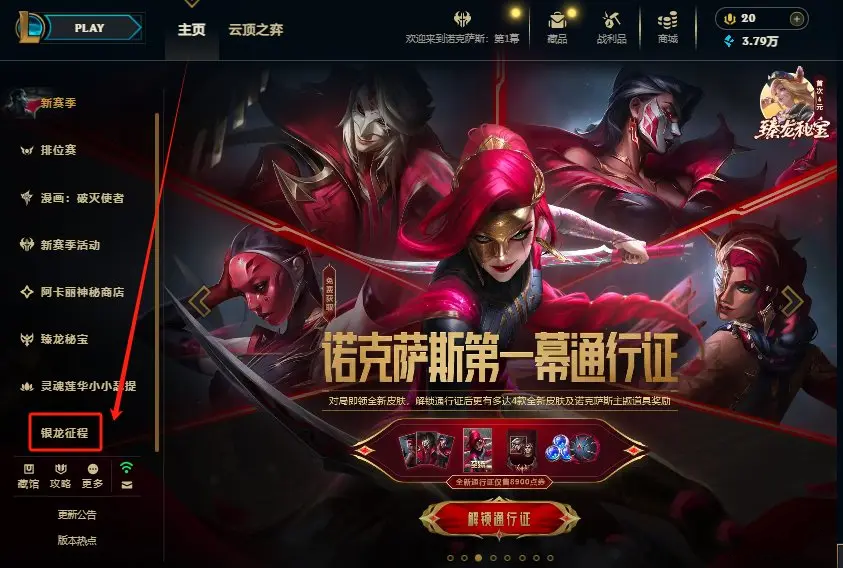 打开英雄联盟客户端:在客户端首页向下滑动,找到并点击“银龙征程”进入活动页面。