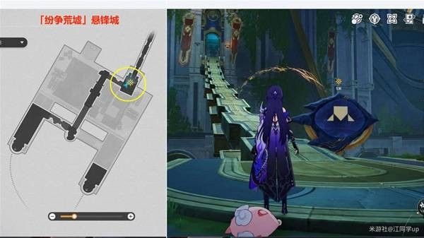 后续前往「纷争荒墟」悬锋城2层的2号任务点时,发现路上的木栏杆将挡住前进。