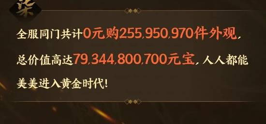 就单说官方战报公布的,光是补贴玩家的0元购外观,逆水寒就送出了上亿件,总价值超百亿元。甚至外观只是送福利的一部分,你就能想象黄金服砸钱给玩家有多恐怖了。