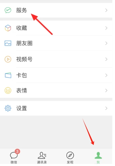1、首先打开微信,在我的页面点击“服务”。
