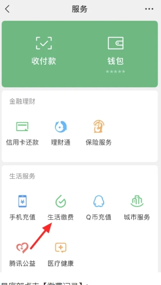 2、然后在服务页面点击“生活缴费”功能。