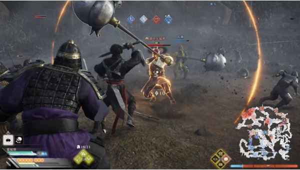 大军团机制:当敌方士兵聚集形成“大军团”时,会触发高战意连携攻击,对玩家构成威胁。击破大军团量表可瓦解其战斗力。