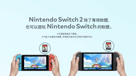 Switch 2除了专用的新游戏,还支持游玩Switch一代的实体版和数字版游戏,实现向下兼容。