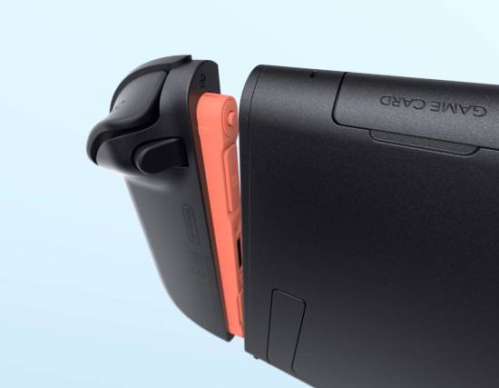 除此之外,任天堂官方还额外发布了一段视频,主要展示了新机手柄细节,拆卸手柄似乎是通过手柄背部新增的按键来释放,此外还展示了背部支架。一起来看一下。