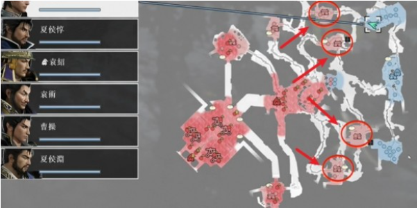 关卡开始时,首先占领四个重要据点,确保曹操军不会被击溃。
