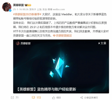 不是,哥们!怎么还能火上浇油的啊!很快嗷,这番言论直接引爆了国内外的LOL社区,官方也不得不在今天凌晨发布道歉公告,承认新赛季的精粹和经验获取机制都存在严重失误,后续将修复问题并给出补偿,但从目前的评论区看来,大伙都不太买账嘛!