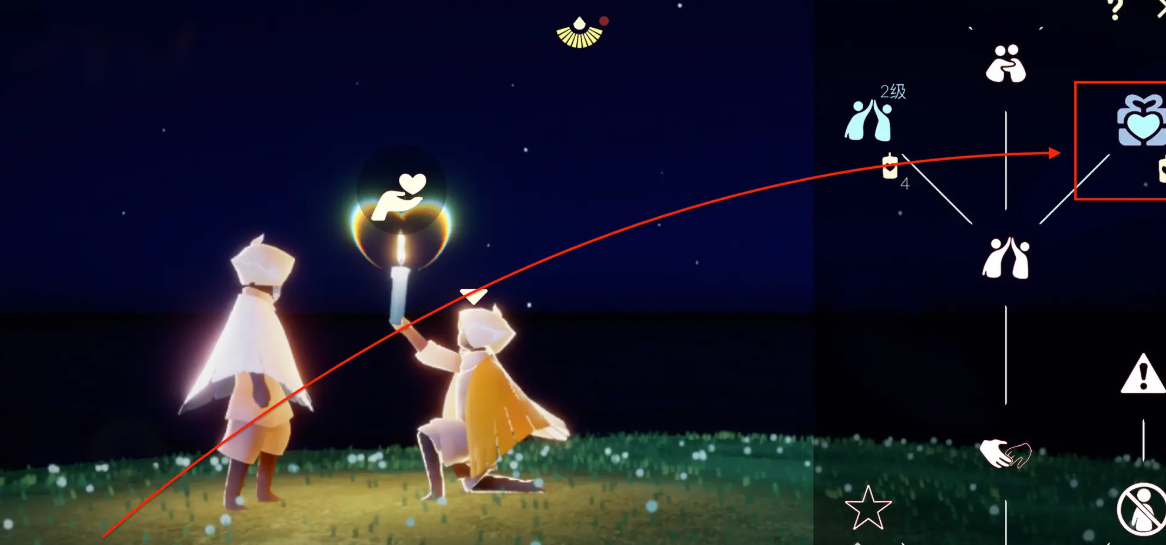 2.在 [好友星盘¹] 上随机点击一位已经解锁击掌的好友,找到第三个图标花费3根普通蜡烛完成送礼即可