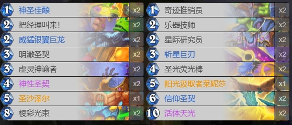 圣契骑卡组结合了强力的圣契机制和骑士职业的稳固防御,适合喜欢打持久战的玩家。
