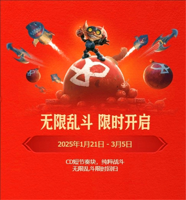 活动内容:春节期间,参与无限乱斗模式,享受更加狂野和轻松的游戏体验,放松心情,体验乱斗的乐趣。