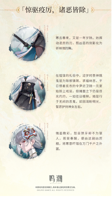 2025年1月23日10:00~2025年2月13日03:59(服务器时间)期间,参与[刃舞候春归]伙伴邀约签到活动,可免费领取散华服饰「叱妖诰」。