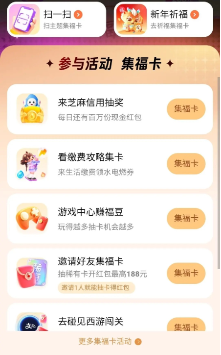 进入支付宝的“游戏中心”,通过小游戏任务获取更多卡片和红包。