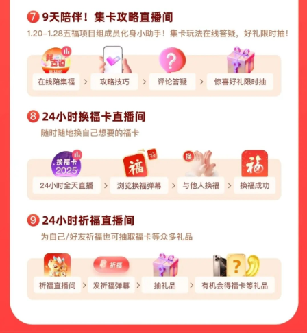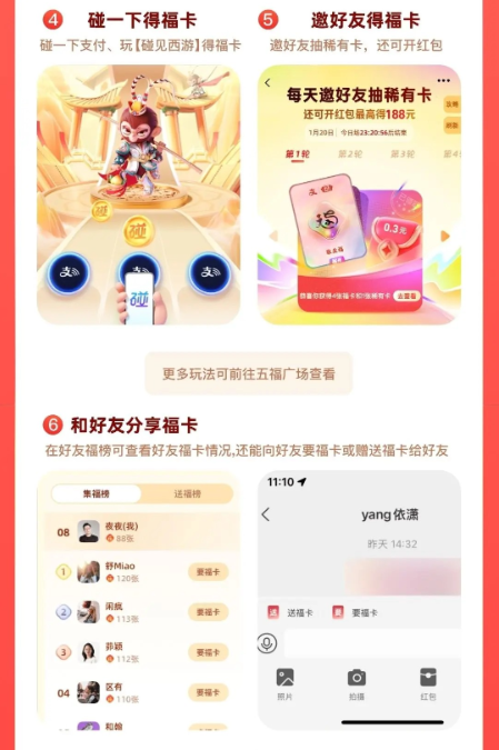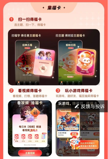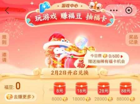 完成任务:新增了更多任务渠道,比如参与小游戏、完成活动任务等,完成后可抽取福卡。