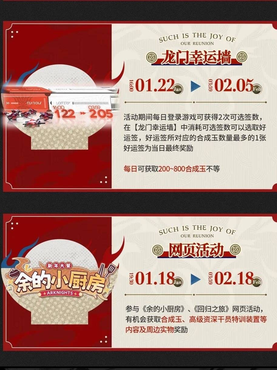 龙门幸运墙:每天可获得200~800合成玉,活动期间累计可获取约8000合成玉。
