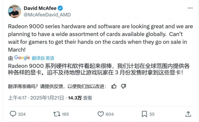AMD RX 9000系列GPU确认三月上市 比英伟达晚一步但竞争力不减