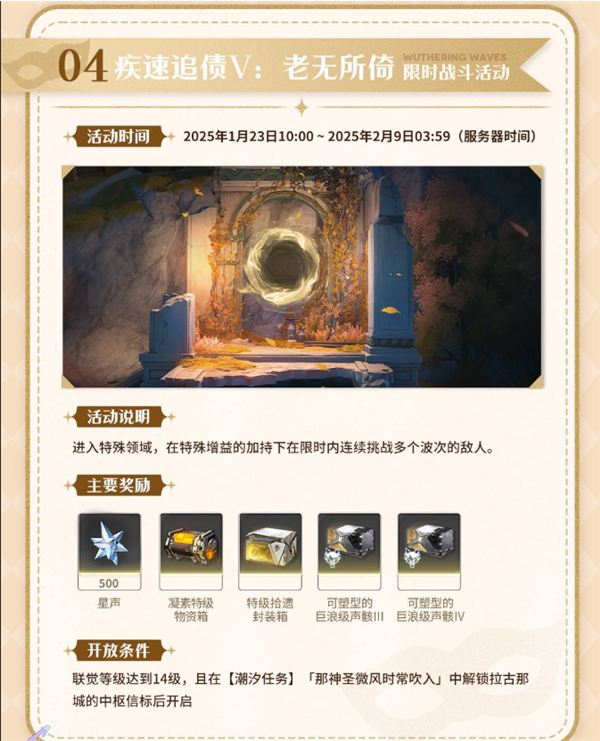 活动期间,每日0点(UTC+8)通过游戏内邮件发放奖励,总计可获得1600星声。邮件需在下次版本更新前领取,漂泊者请注意时间!