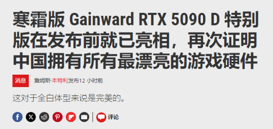 国内特供纯白RTX 5090 D显卡曝光:外媒馋坏了!