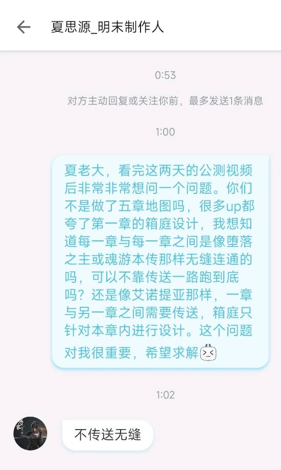 《明末:渊虚之羽》制作人夏思源近日在B站评论区或者私聊回答了部分玩家的疑问,其中包括大世界地图、死亡掉魂、难度选项等问题。