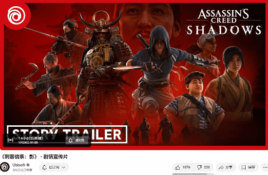 育碧官方宣布将于北京时间1月24日凌晨1点发布《刺客信条:影》的全新预告片。