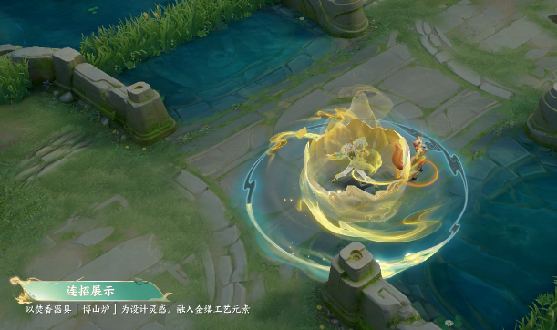 ◆二技能:蓄力时,宝炉底座出现,破碎的玉石接连拼合直至炉身完全修复,光彩迸发,复现云烟与山峦之景。