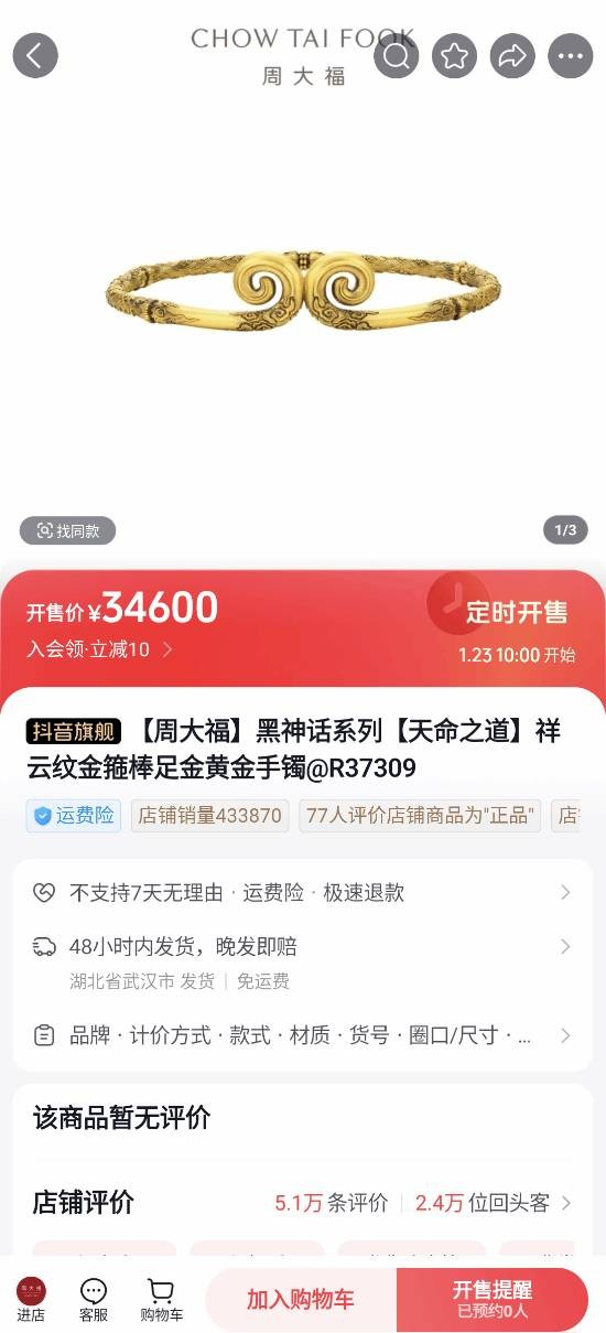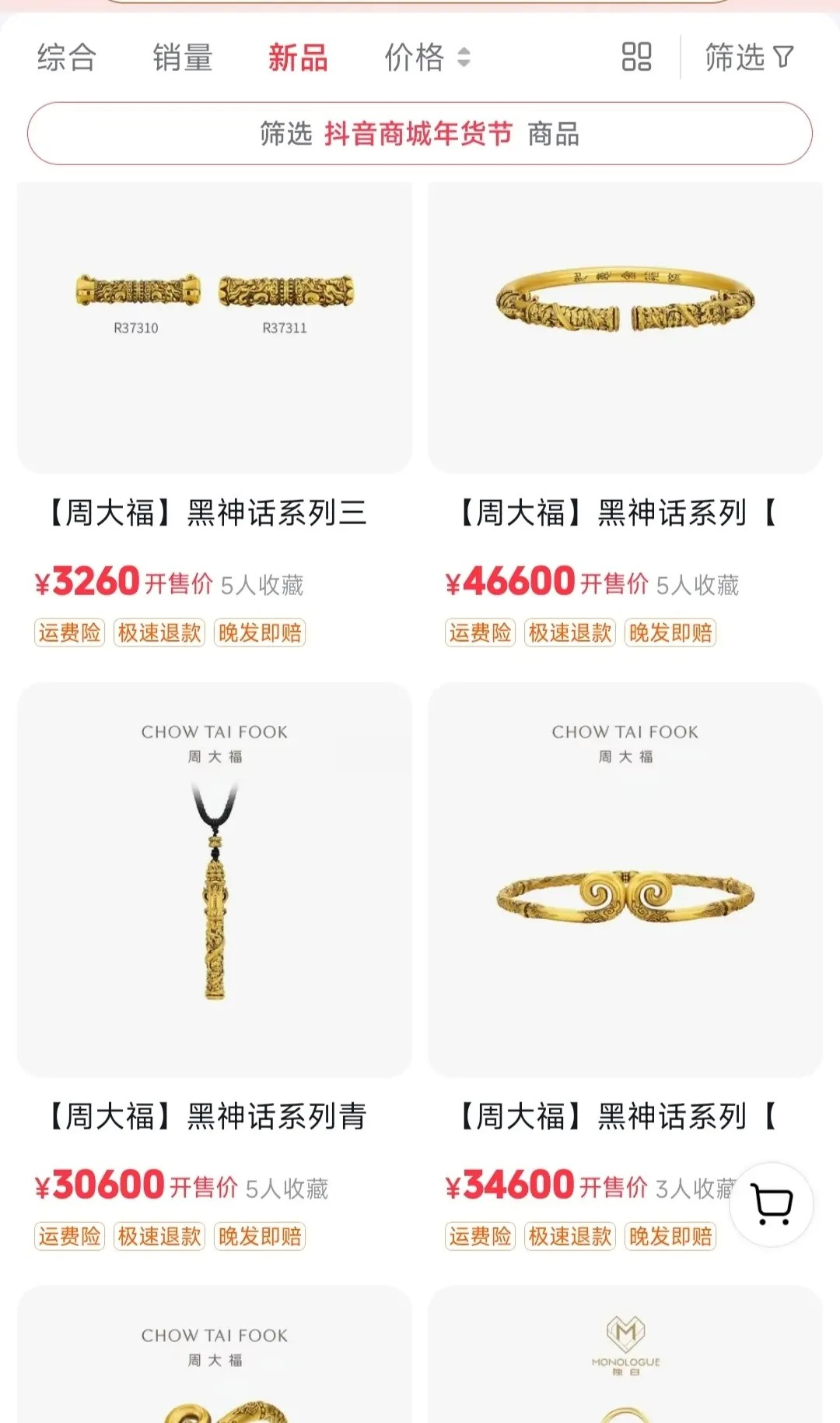例如,足金黄金戒指“明心见性”售价6,900元,金箍棒形态的手镯“安心定志”售价34,600元,转运珠系列价格则从3,260元起。