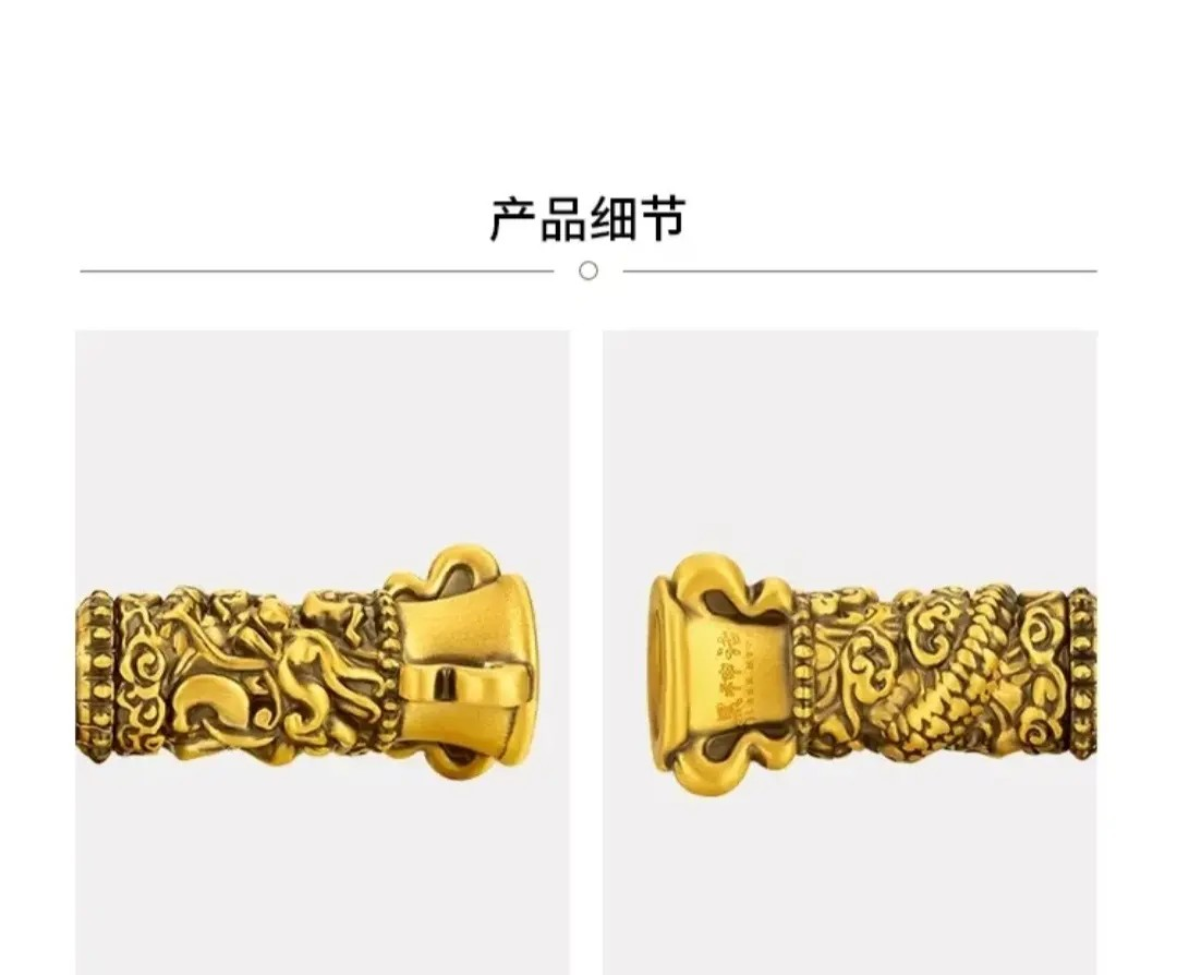 其中,最引人注目的是售价高达46,600元的足金黄金手镯,设计灵感来源于《黑神话:悟空》中的经典金箍棒元素,彰显了奢华与时尚的完美融合。