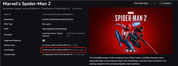 虽然漫威蜘蛛侠2PC版的预购功能尚未开启,但Epic后台的数据库今天已显示了该游戏的价格。依据索尼在国区的定价策略,美区标准版的60美元对应国区的398元人民币,豪华版70美元则对应国区483元人民币。