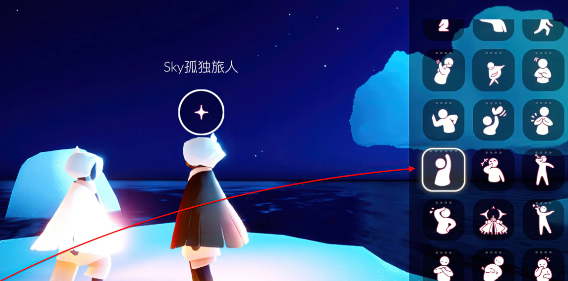 点击屏幕上方中间动 找到招手动作 面对好友 点击并完成招手即可
