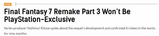 制作人确认《最终幻想7RE》第三部不再是PS6独占!已开发9个月