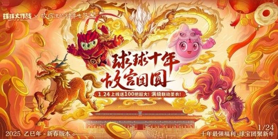 灵蛇舞动,神兽纳福!《球球大作战》已于1月24日为全体球宝带来十年春节最强福利,故宫里的神兽世界联动正式开启,上线即可免费领满级联动限定圣衣!100把超大奇妙宝箱钥匙零门槛领、经典玩法春节返场、还有绝版皮肤、联动通行证等超值福利,携手共赴蛇年,团聚波拉哩!