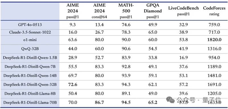 DeepSeek 开源了 6 个用 R1 蒸馏的小模型,其中蒸馏版 Qwen-1.5 甚至能在部分任务上超过 GPT-4o。