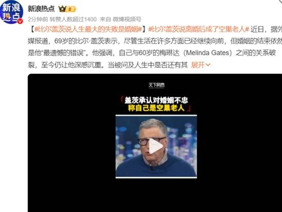 比尔盖茨坦言离婚是最遗憾的错误 离婚后成空巢老人