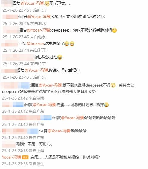 在冯骥的回应里,有玩家调侃冯骥的的计划被AI“拆穿”,还有玩家调侃道:“8月20日(DLC)出不来就说明这AI也不过如此。”