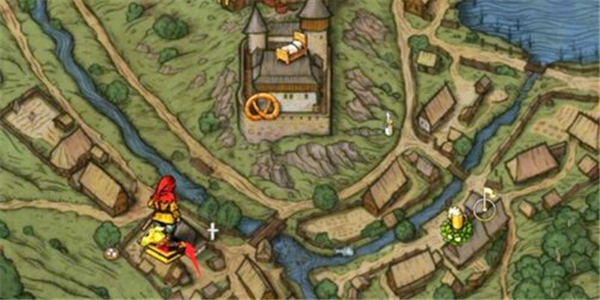 2.在塔尔木堡的位置,向左侧查看,可以找到一座带有十字架标记的小屋。