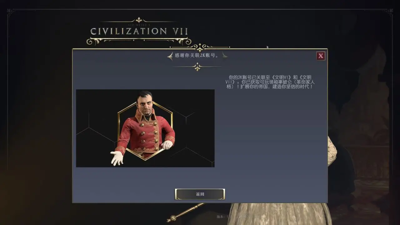 3、成功绑定文明7的游戏平台账号后,君主形象的拿破仑会自动解锁并发放至游戏中。