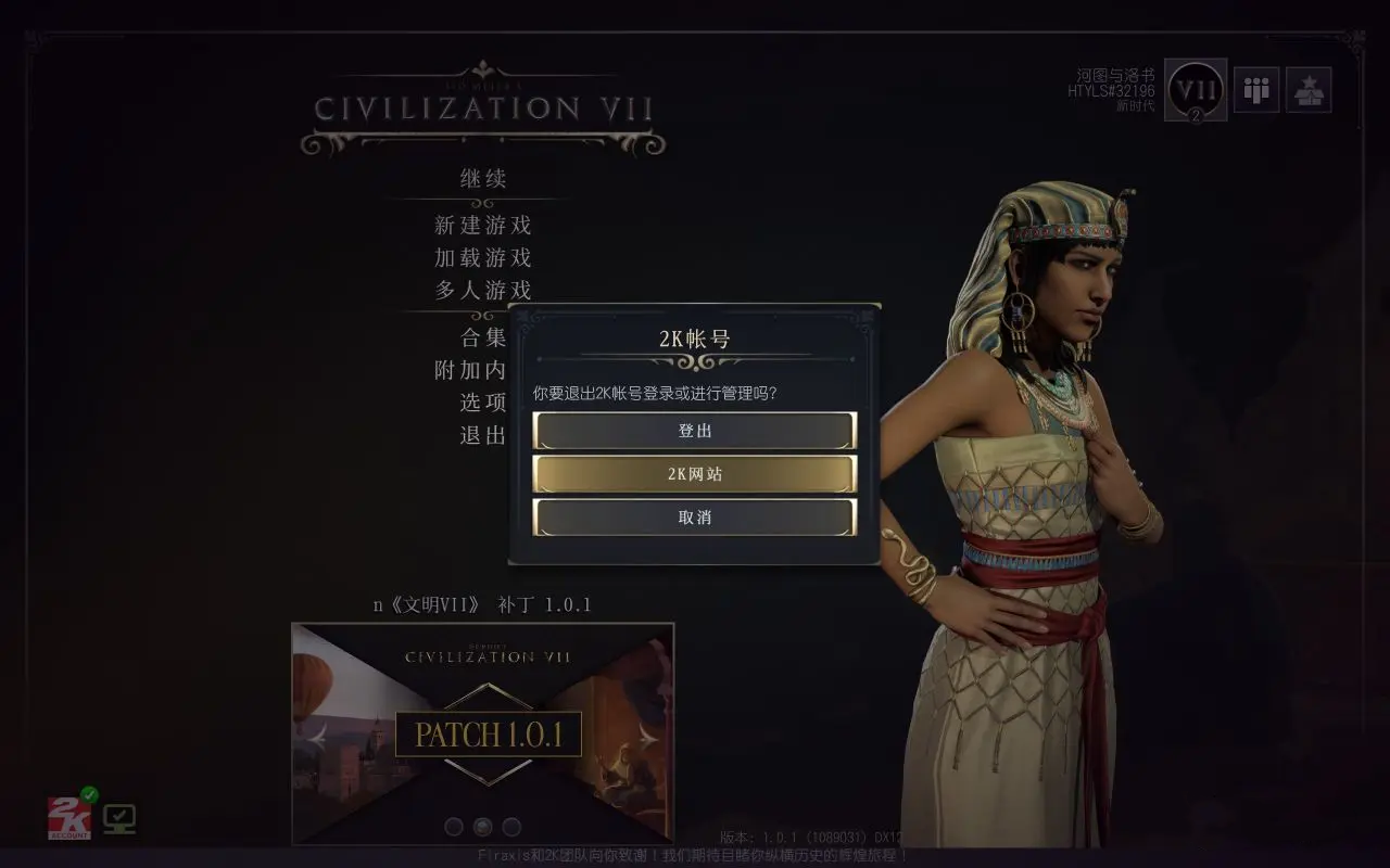 2、在完成君主形象解锁的基础上,登录文明6,同样在右下角绑定2K账号。