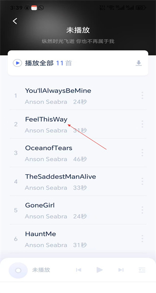 3、切换到纵然时光飞逝,你也不再属于我专题,歌曲列表中有多首歌曲,可浏览或播放。