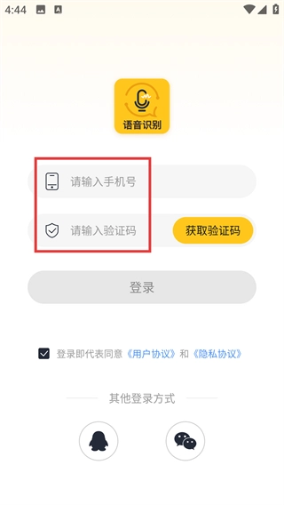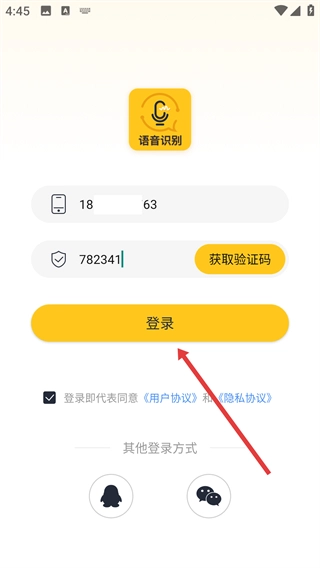 3、在登录页面输入手机号和验证码。