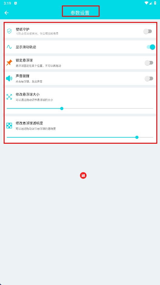 3、在【参数设置-页面】,可对悬浮球等功能进行个性化设置。