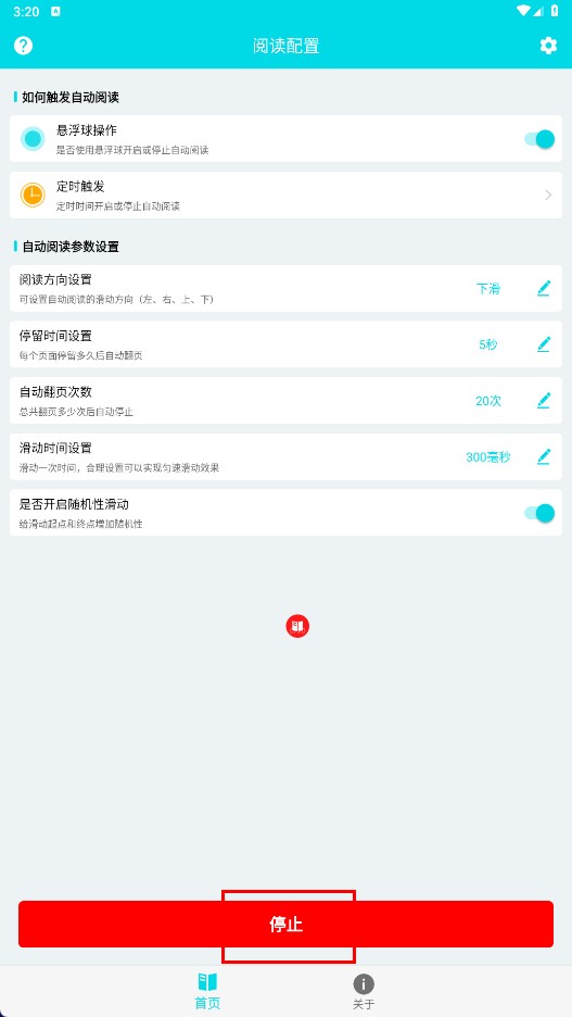 4、若需停止自动阅读,点击【停止-按钮】即可。