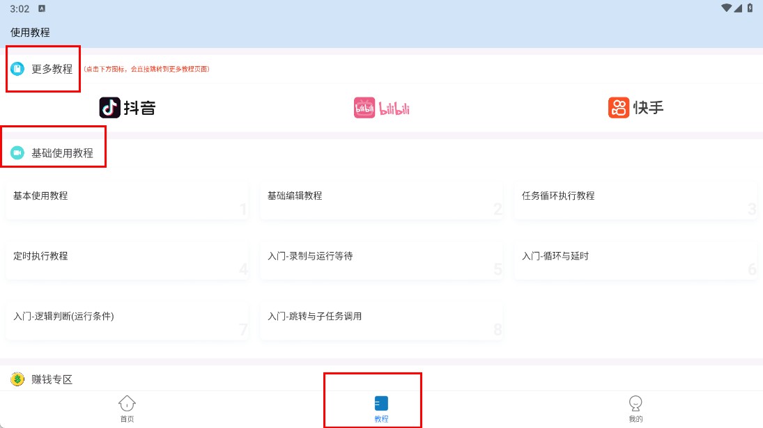 4、在【教程-页面】,可选择【更多教程】或【基础使用教程】,学习软件操作方法。