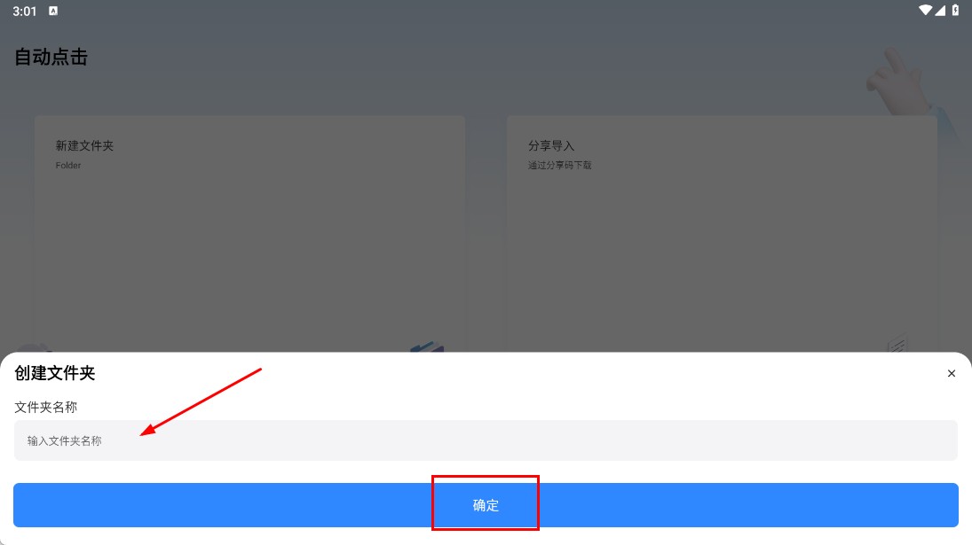 2、在【输入文件夹名称-输入框】填写名称后,点击【确定-按钮】完成文件夹创建。
