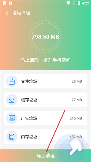 2、一键清理:用户只需点击一下,即可轻松清理扫描出的垃圾文件,释放手机存储空间,让微信运行更加轻快。