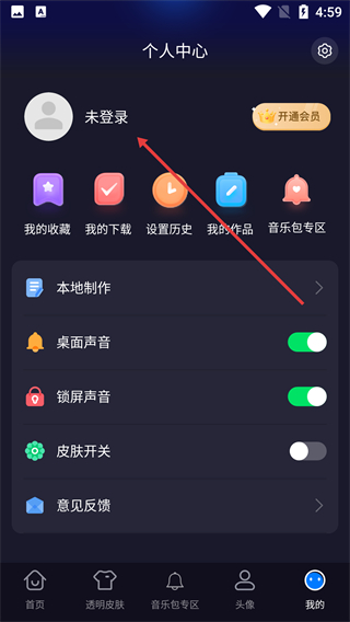1、在个人中心页面,点击【未登录】区域,即可进入验证码登录页面。