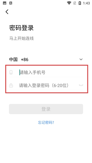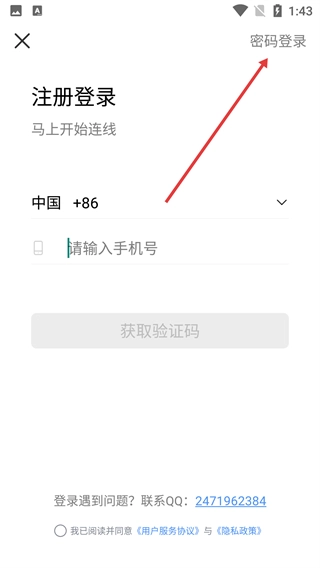 在注册登录页面找到并点击【密码登录】选项,即可进入密码登录页面。