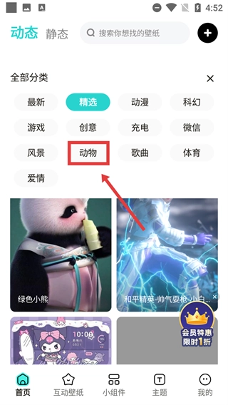 在全部分类页面中找到并点击“动物”分类,即可进入动物壁纸的列表页面。