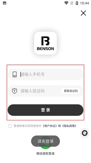 在登录页面,先在“请输入手机号”输入框中填写手机号码,点击“获取验证码”按钮后输入收到的验证码,勾选相关协议并点击“登录”按钮即可完成登录操作。