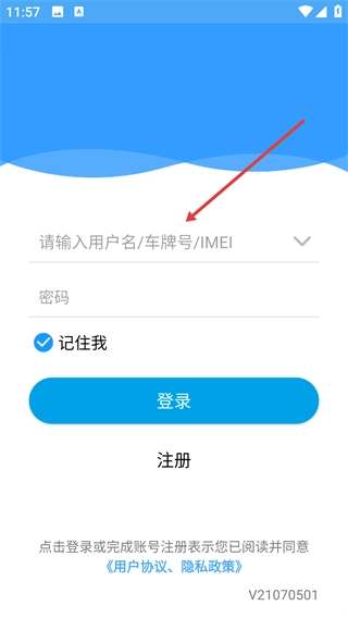 在“请输入用户名/车牌号/IMEI”这个输入框里填写车牌号,比如“闽A”这样的格式。